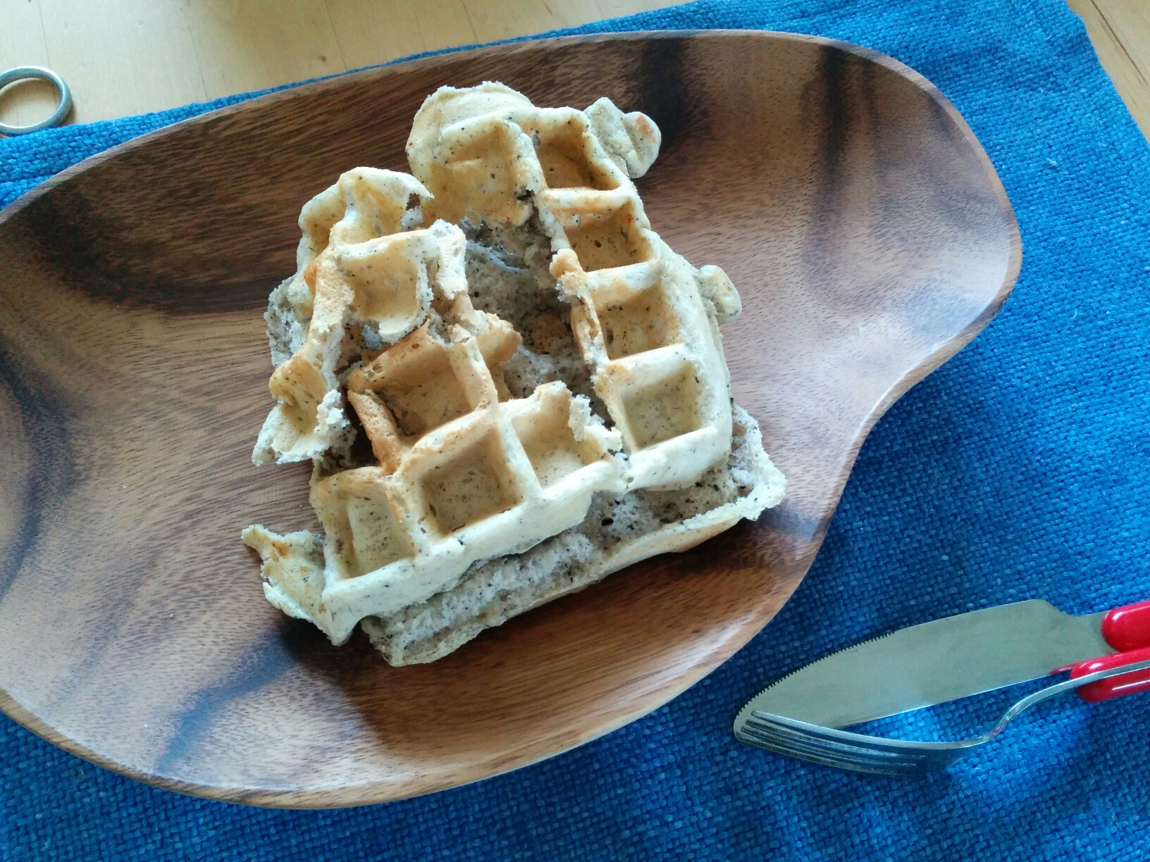 玄米を使ったワッフルさん。最近ワッフルマシーンで、自分流行です